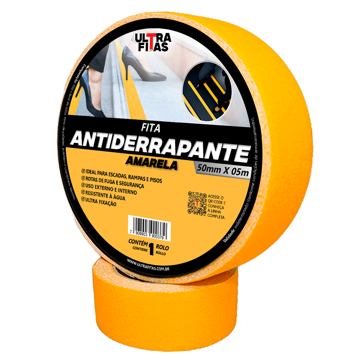 Fita antiderrapante ULTRA FITAS: Indicada para uso interno e externo graças a alta resistência à água e corrosão, com espessura e aderência equiparada às melhores do mercado.