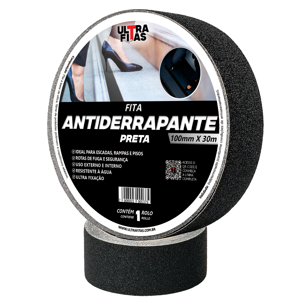 Fita Antiderrapante Ultra Fitas 48mm x 15m Auto adesiva, Ideal para Corredores Escadas e Rampas Interno/Externo Resistente à Água