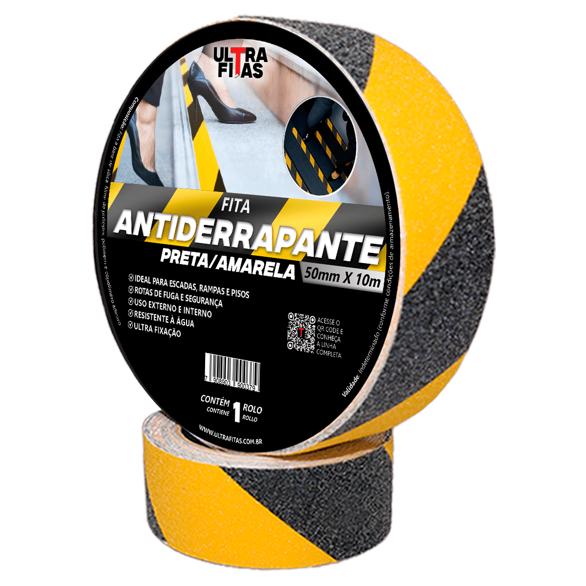 Fita antiderrapante ULTRAFITAS: Indicada para uso interno e externo graças a alta resistência à água e corrosão, com espessura e aderência equiparada às melhores do mercado.