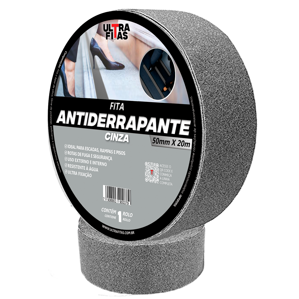 Fita antiderrapante ULTRAFITAS: Indicada para uso interno e externo graças a alta resistência à água e corrosão, com espessura e aderência equiparada às melhores do mercado.
