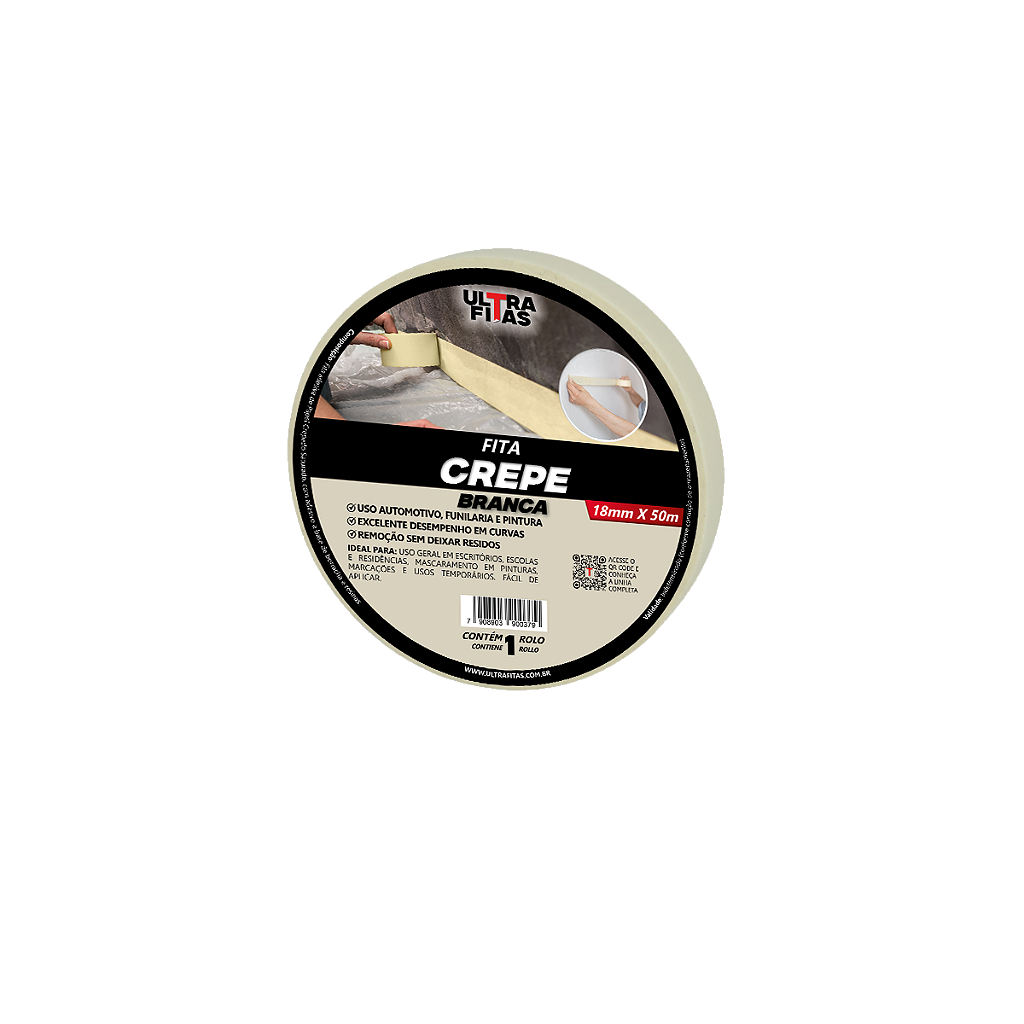 A Fita Crepe 18mm x 50m da Ultra Fitas é a solução ideal para diversas aplicações do dia a dia, oferecendo praticidade, aderência eficiente e fácil remoção. Produzida em papel crepado saturado branco, possui um adesivo de borracha natural e resinas, garantindo fixação segura sem deixar resíduos.