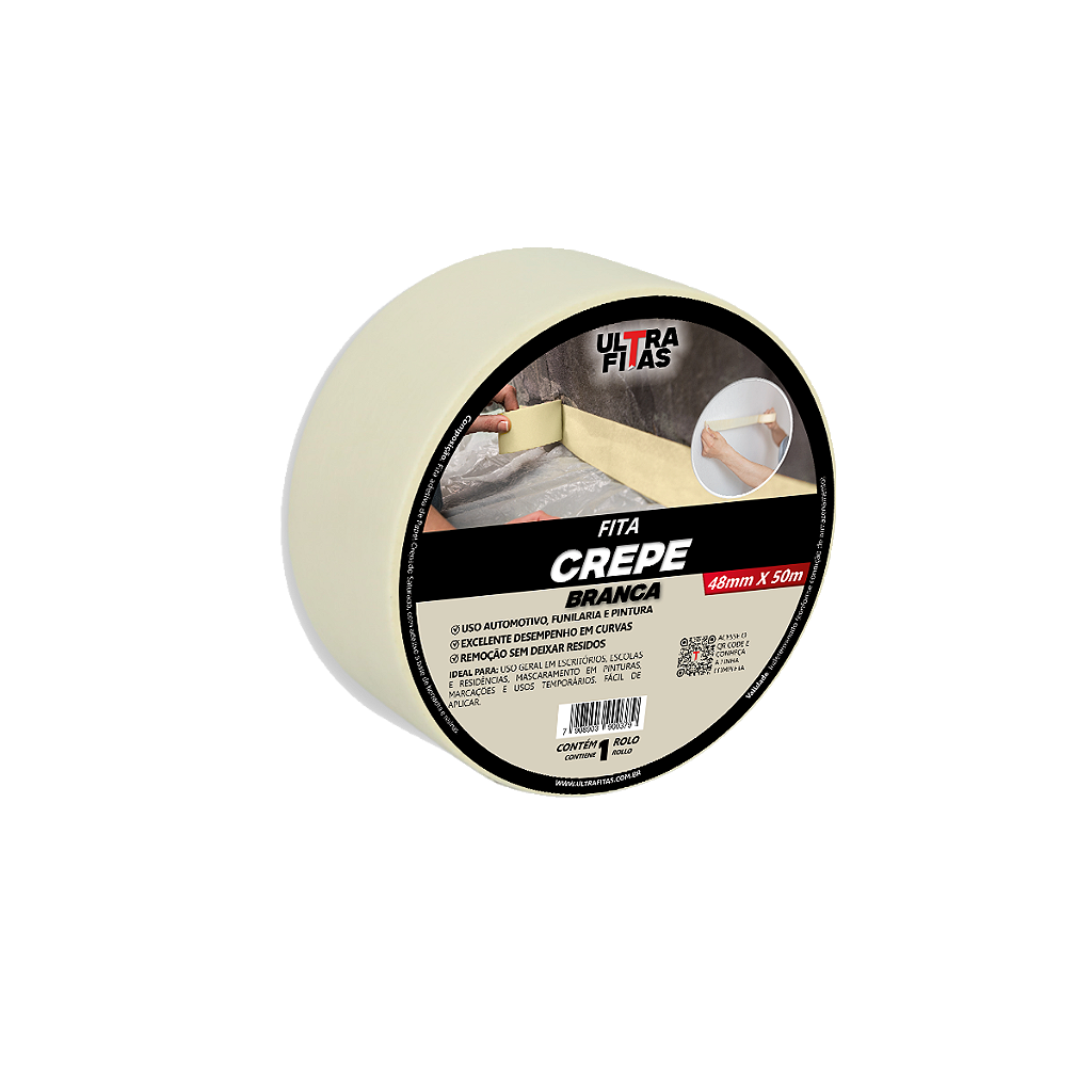 A Fita Crepe 48mm x 50m da Ultra Fitas é a solução ideal para diversas aplicações do dia a dia, oferecendo praticidade, aderência eficiente e fácil remoção. Produzida em papel crepado saturado branco, possui um adesivo de borracha natural e resinas, garantindo fixação segura sem deixar resíduos.