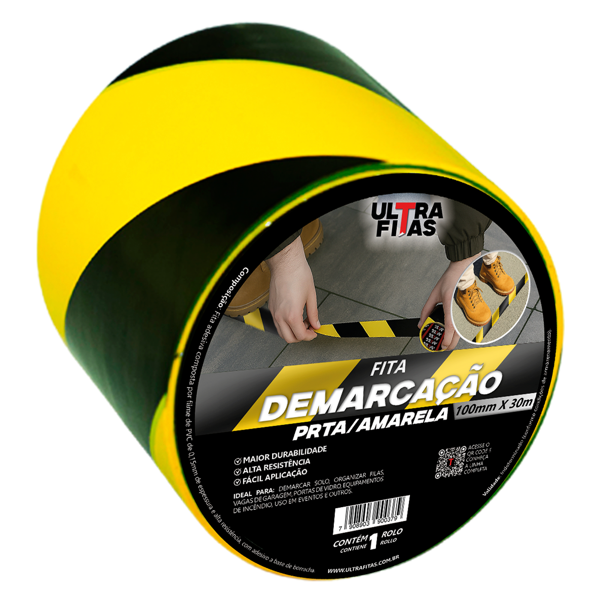 A Fita Adesiva de Demarcação de Solo da ULTRA FITAS possui qualidade internacional e espessura que garantem altíssima durabilidade, resistência a produtos abrasivos e fácil aplicação, com cores vibrantes que garantem total atenção aos locais demarcados, além do melhor custo-benefício do mercado.
