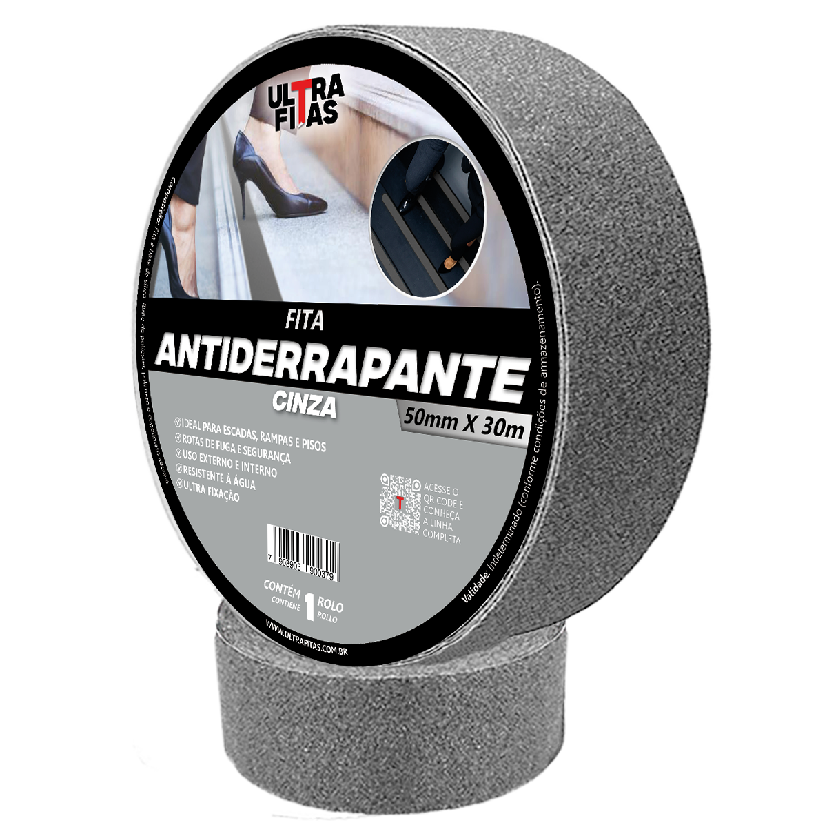 Fita antiderrapante ULTRA FITAS: Indicada para uso interno e externo graças a alta resistência à água e corrosão, com espessura e aderência equiparada às melhores do mercado.