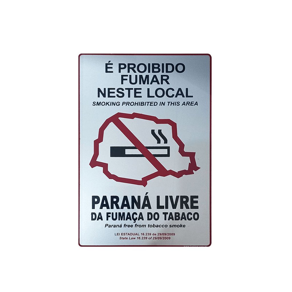 Texto da Placa: Proibido Fumar Neste Local, Paraná Livre da Fumaça Do Tabaco;