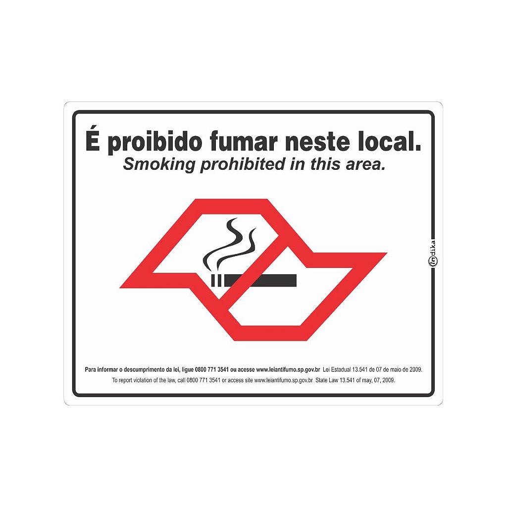 Texto da Placa: É Proibido Fumar Neste Local. Smoking prohibited in this area ;